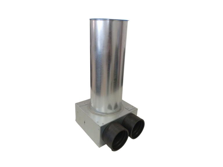 Dzięki elastycznym króćcom możliwe jest szczelne połączenie bez konieczności stosowania uszczelek, co znacznie skraca czas instalacji. Solidna konstrukcja z ocynkowanej stali oraz wbudowana kierownica powietrza zapewniają długotrwałą i cichą pracę systemu wentylacyjnego.